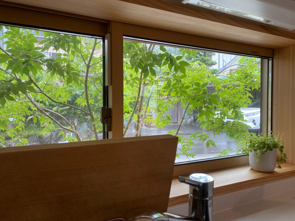 配置計画ということになりますが、「窓は遠くが見えるところを抜く」というのが作法になります。遠くとは、緑、空です。