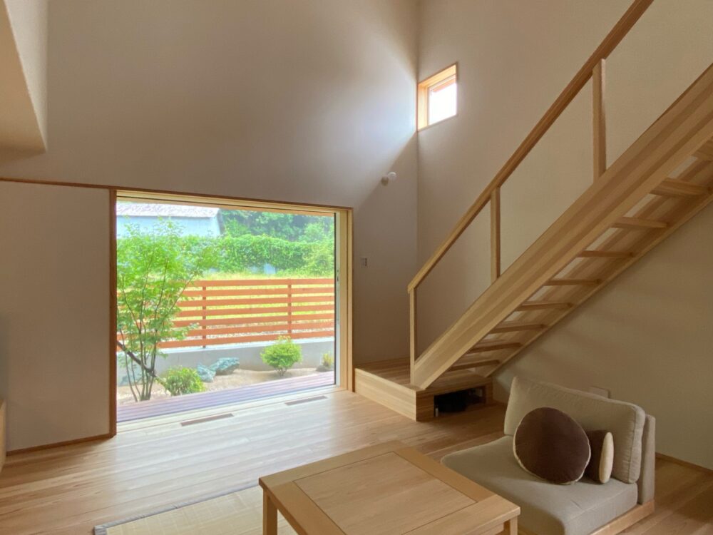 低い重心が活きてくるように、このヨコの吹抜けも植栽計画、配置計画と一緒に考えてあげると、窓が一枚の絵画のように感じられるのです。