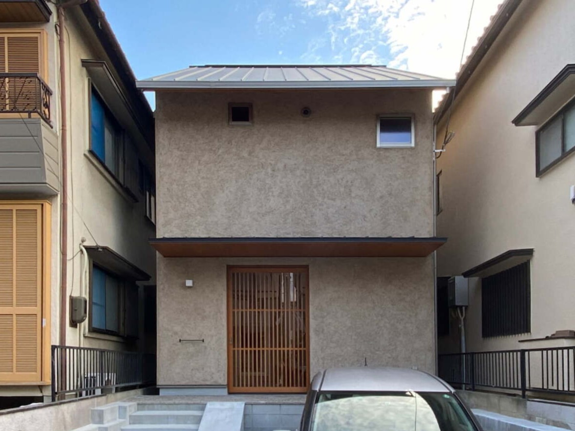 洗い出し土間と製作格子の引き戸がからは手作りの家が感じられ、いつも出入りが楽しくなります。