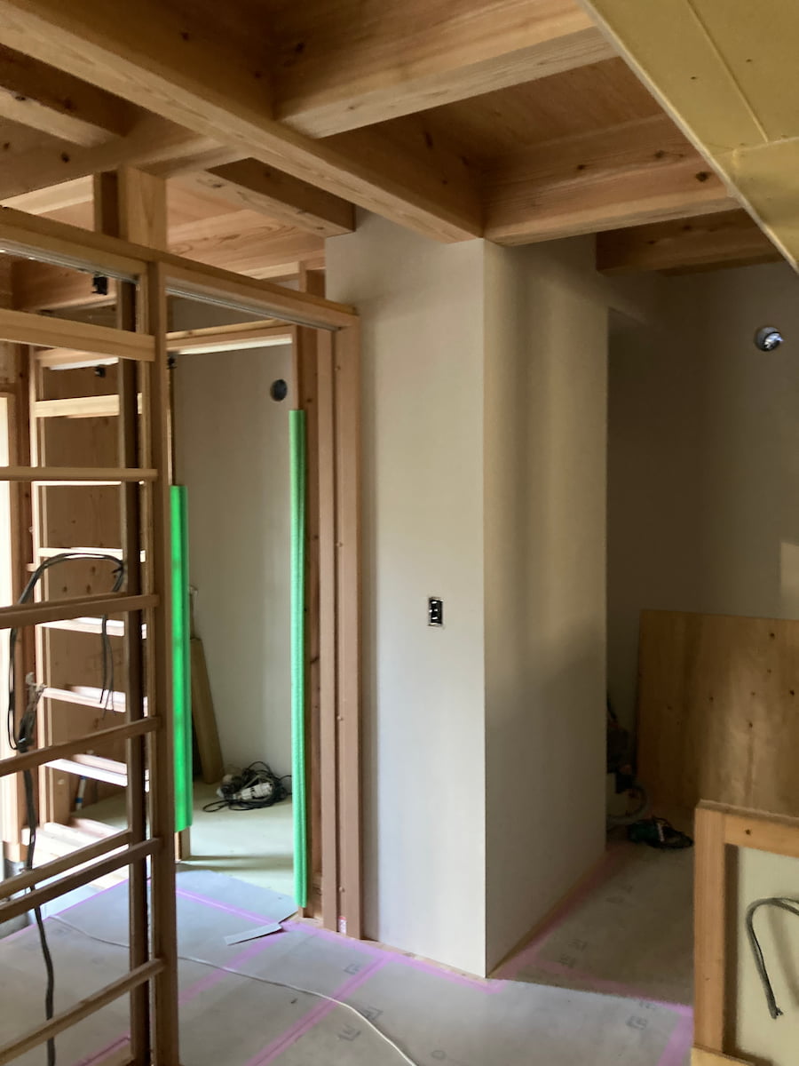 今回は、外壁仕上げ「そとん壁」の施工の様子からご紹介します。