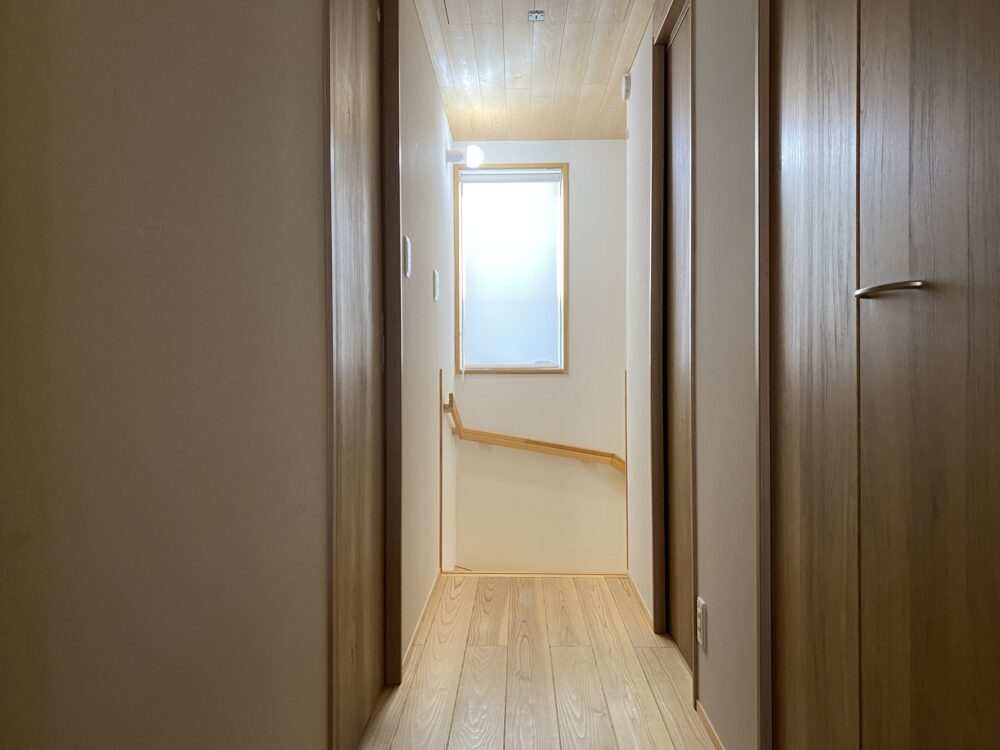 暑い夏、2階リビングの涼しい空気が階段吹抜けから1階へ落ちて行ってしまわないため、冷気止めとしてこの建具が役立ちます。