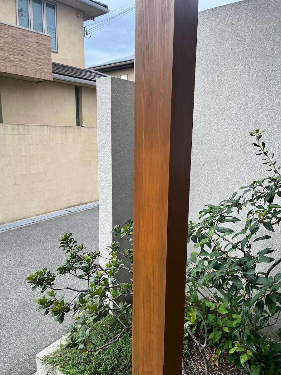 まだ暖かかった頃、竣工から10年目の定期点検に合わせて、「豊中の家」の外装木部の塗装工事を行いました。