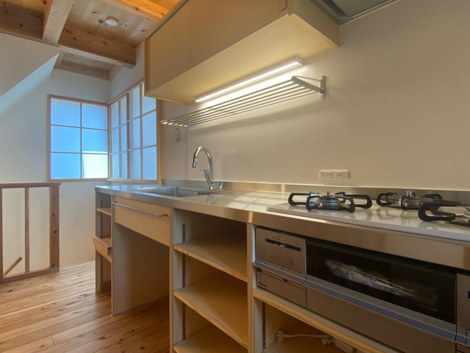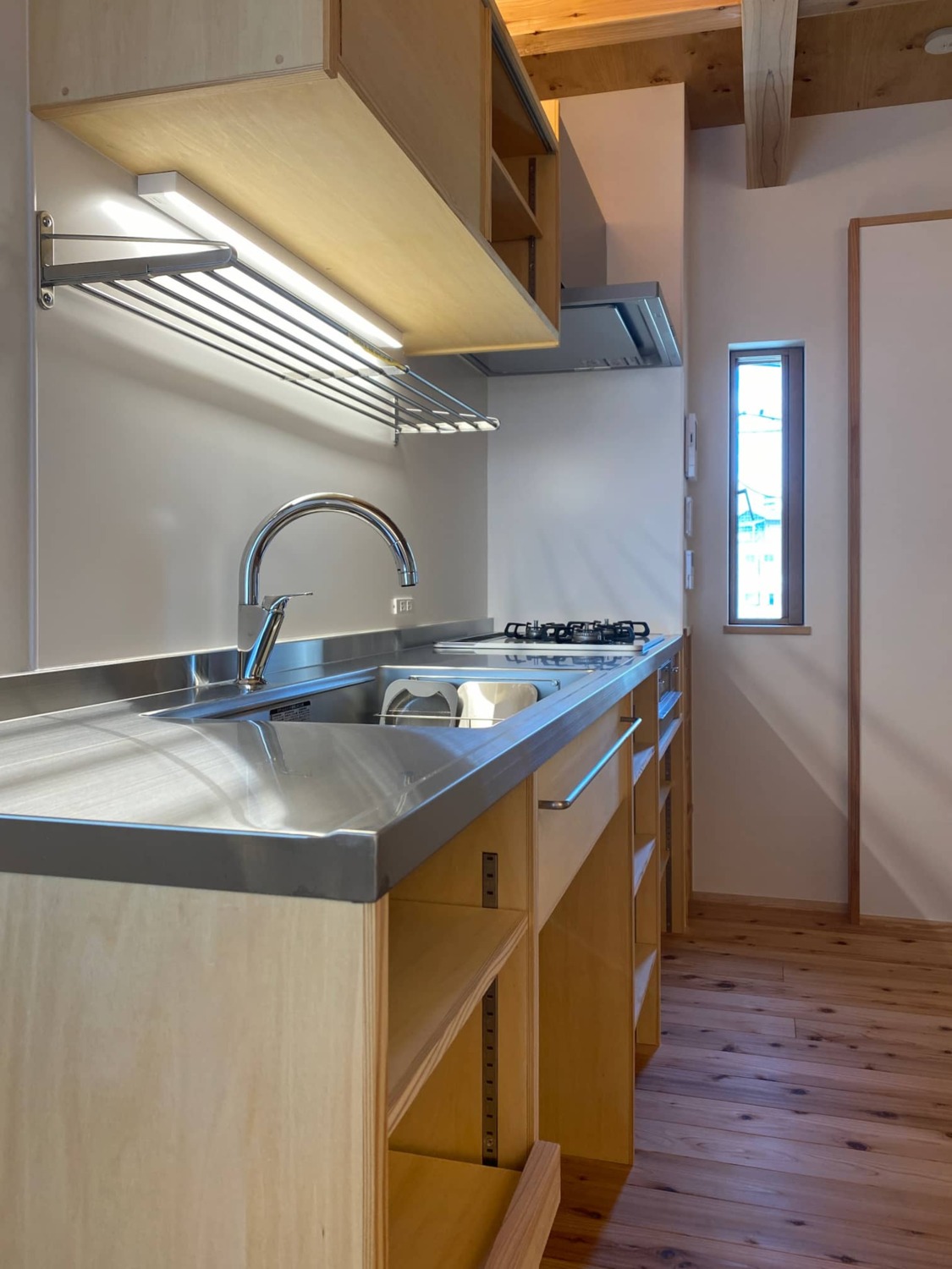 ● 家電も収まるI型造作キッチン