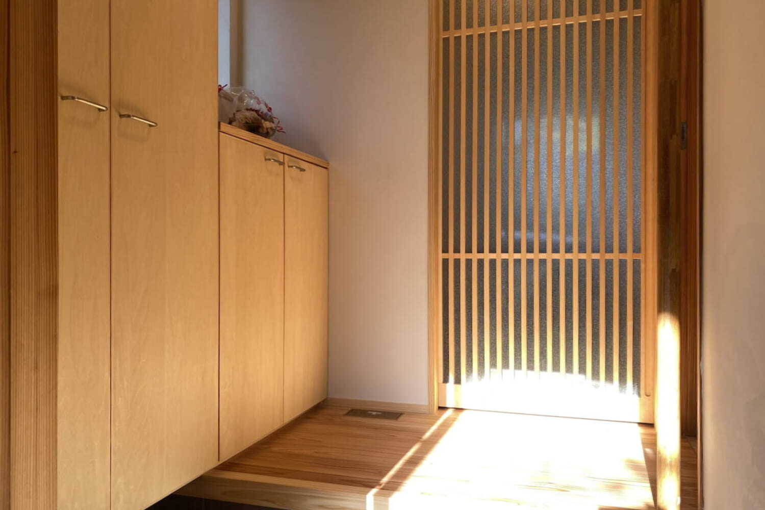 その他には、社長から初めてと言われた引分けの永田格子、桧材のダイニングキッチン天井、あえて引き違いにしたガラリ、引き戸の手掛かりや引残し、棒状の玄関手すり、シングルサイズの敷き布団が二枚入る幅の押入れ、日の目を見ないけど捨てられない物を収納する小屋根裏収納、スイッチ棚や姿見鏡など、挙げるときりがありませんが、的確な設計プランやアドバイスがあったからこそこだわりを実現させることができました。