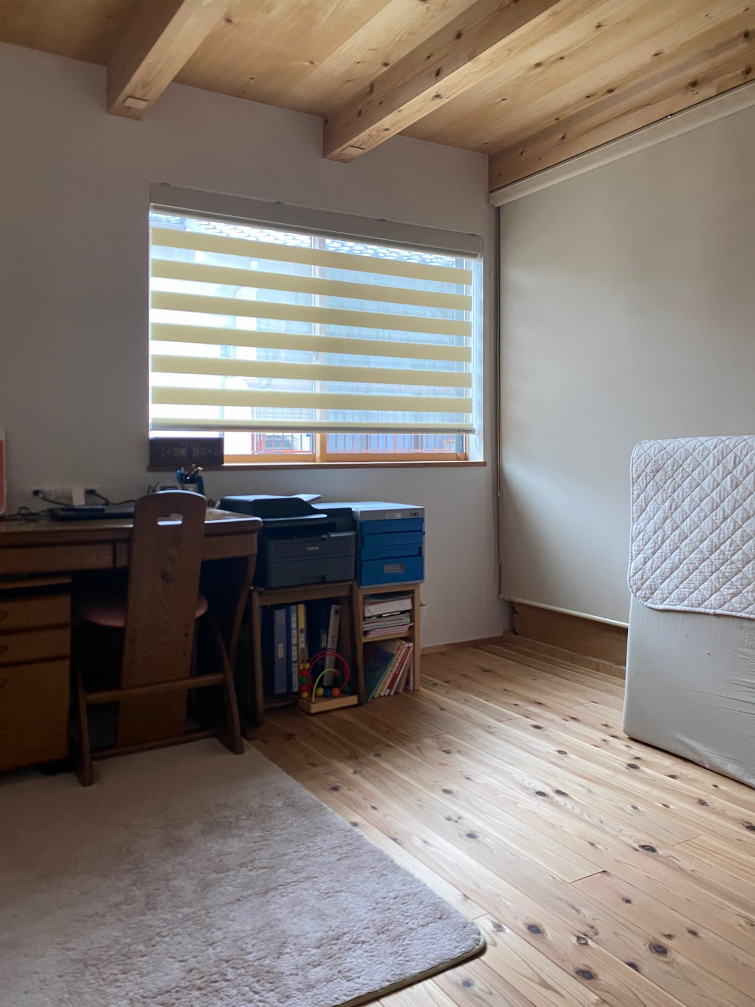 奥様の書斎は寝室兼用で2階にあります。北側に配置されたことで日が差さず安定した灯りがとれ、とても集中できるとのことでした。