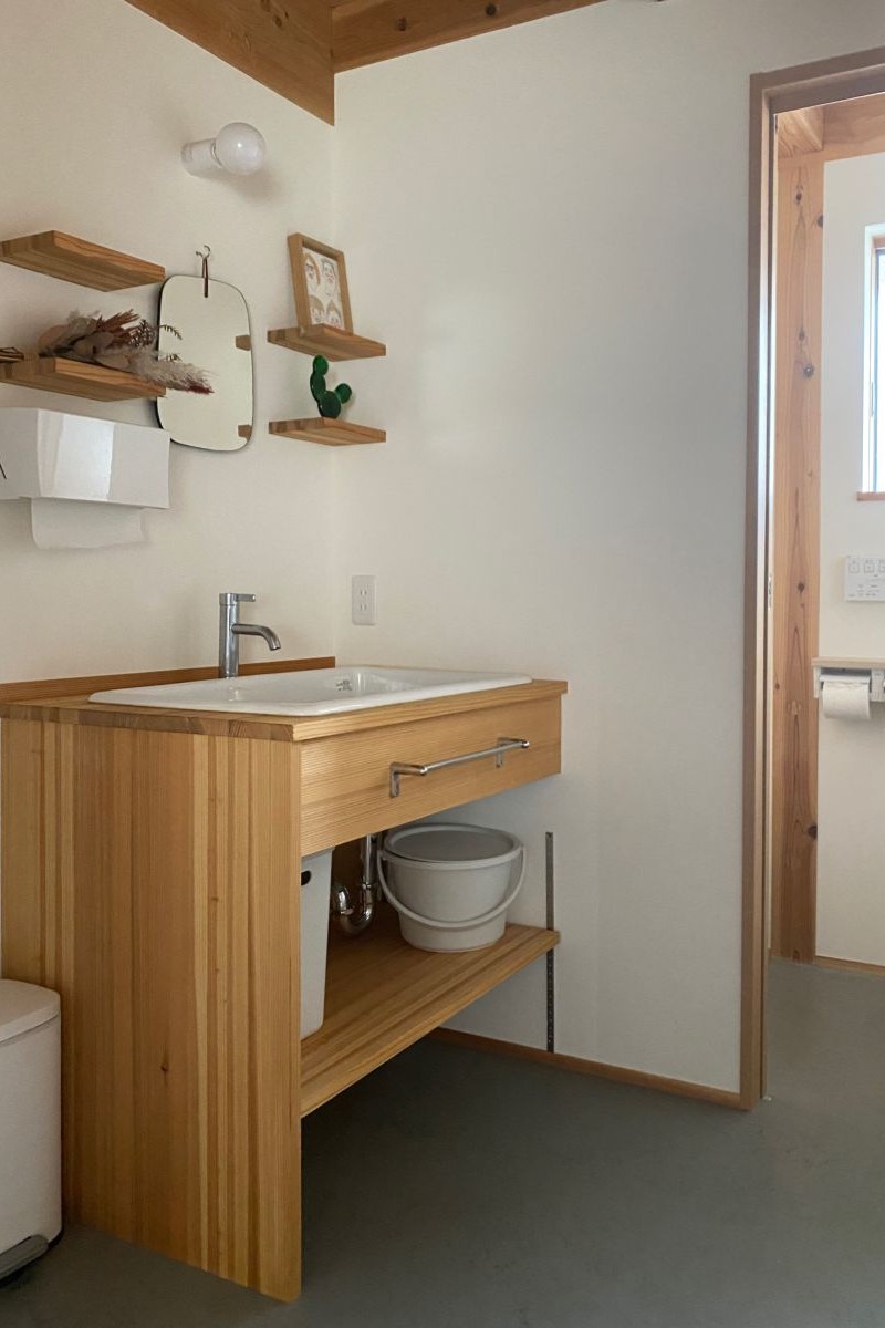 ソーラーコム定番の造作洗面は実験用流しを使います。
