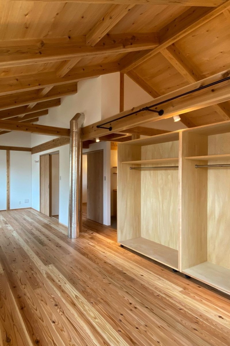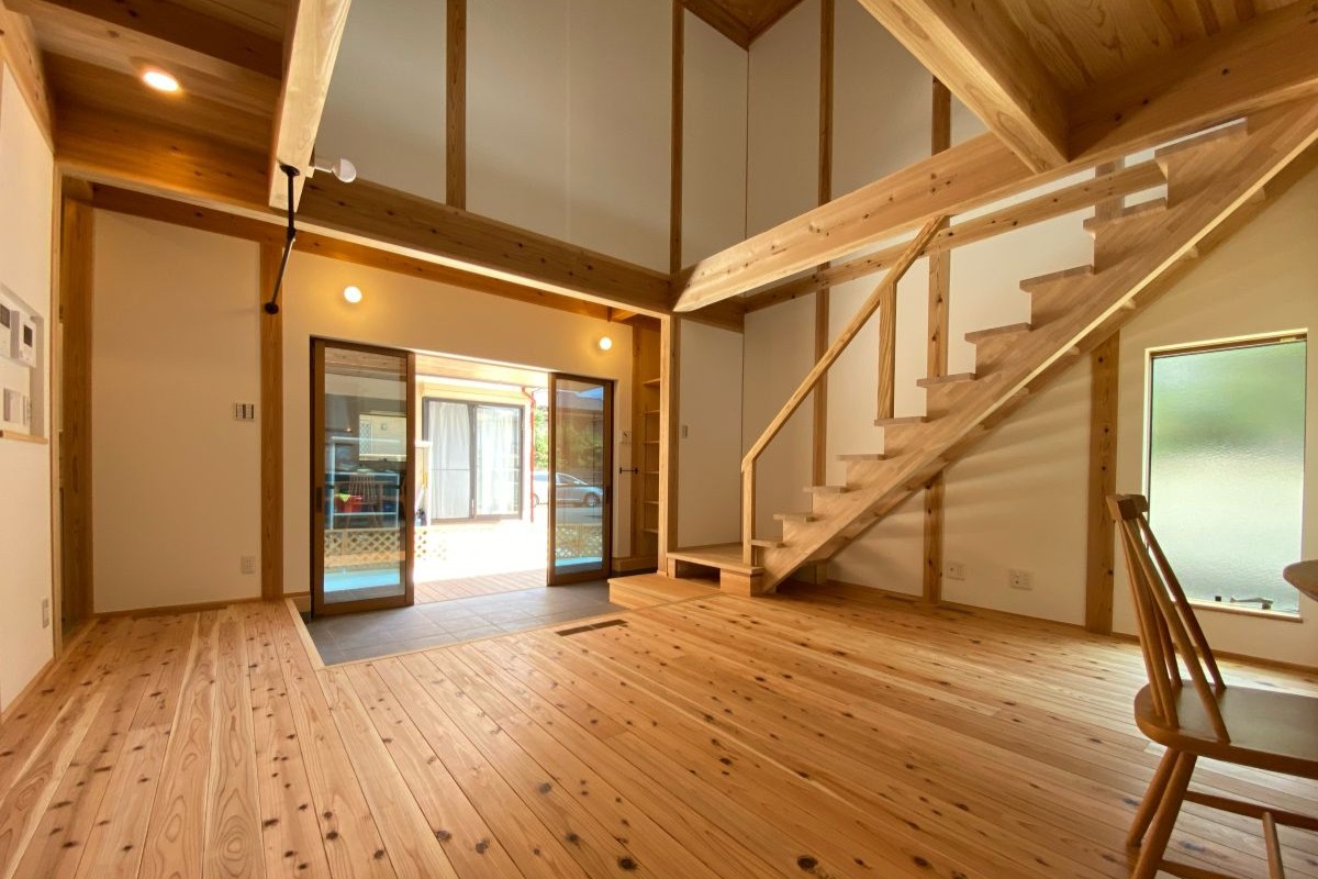 2022年に堺市で完成した、リビング玄関と大きな吹き抜けが特徴の木の家。