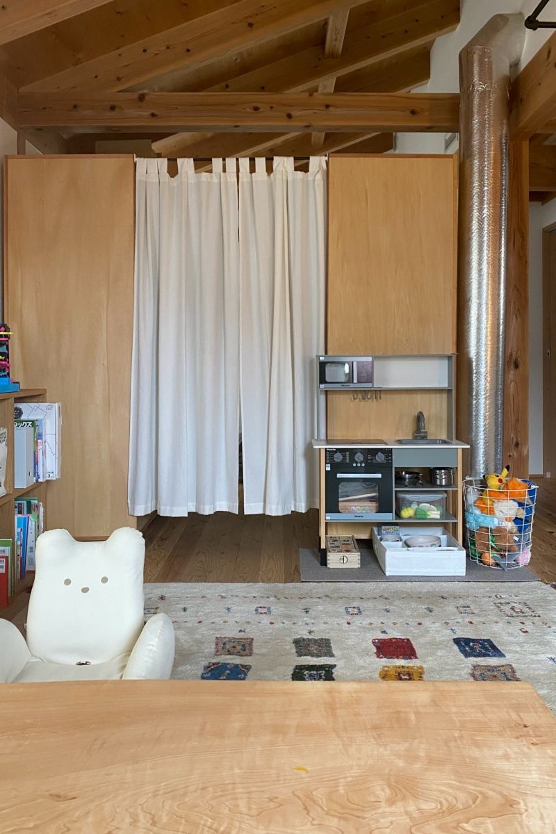 全体的に木の見える面積が多いため、自然とお子様の作品やドライフラワーなどの装飾が馴染むようになっています。
